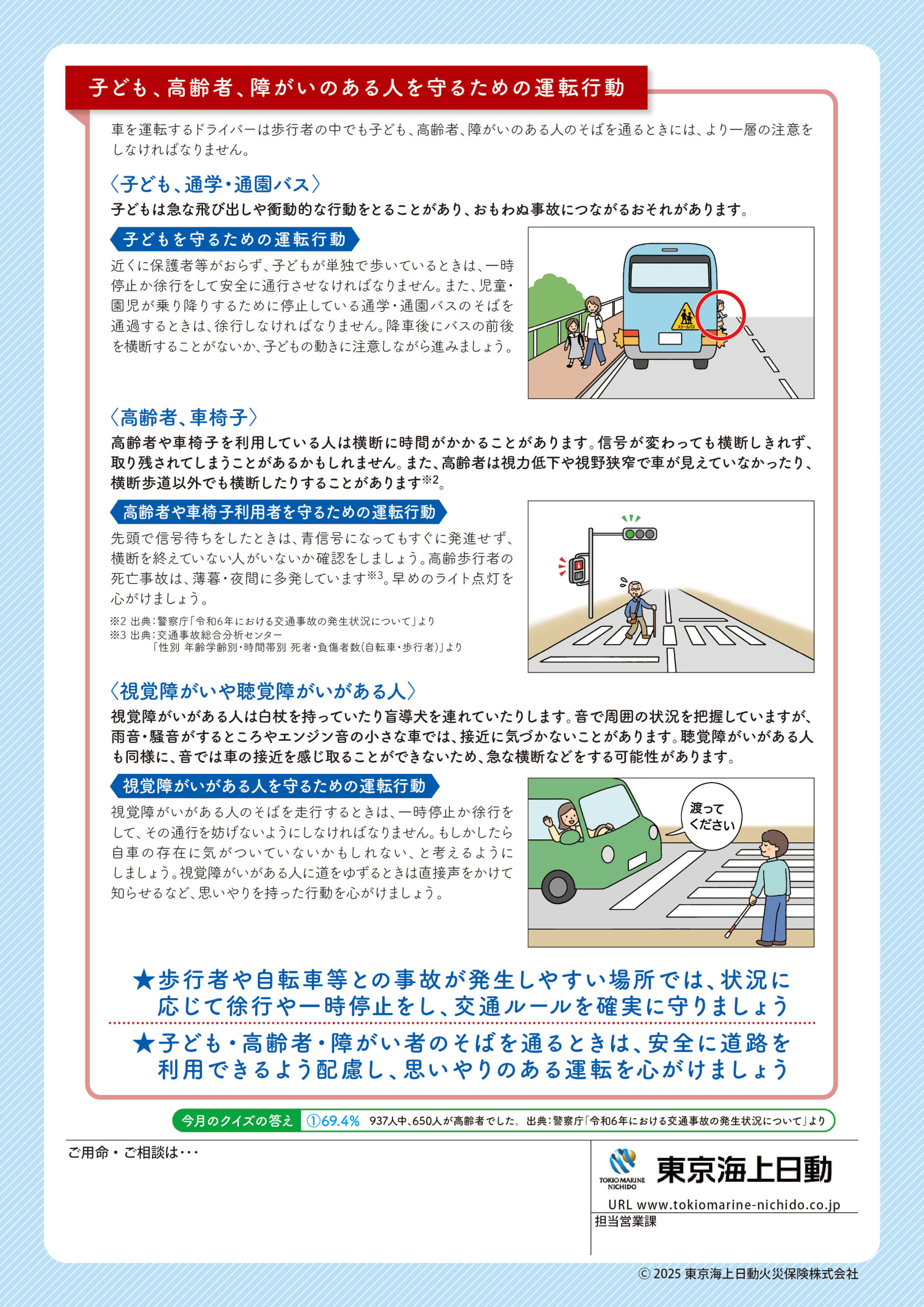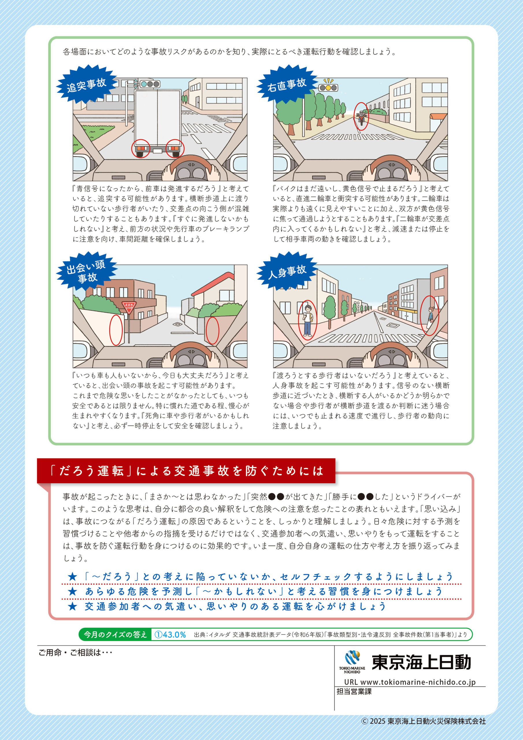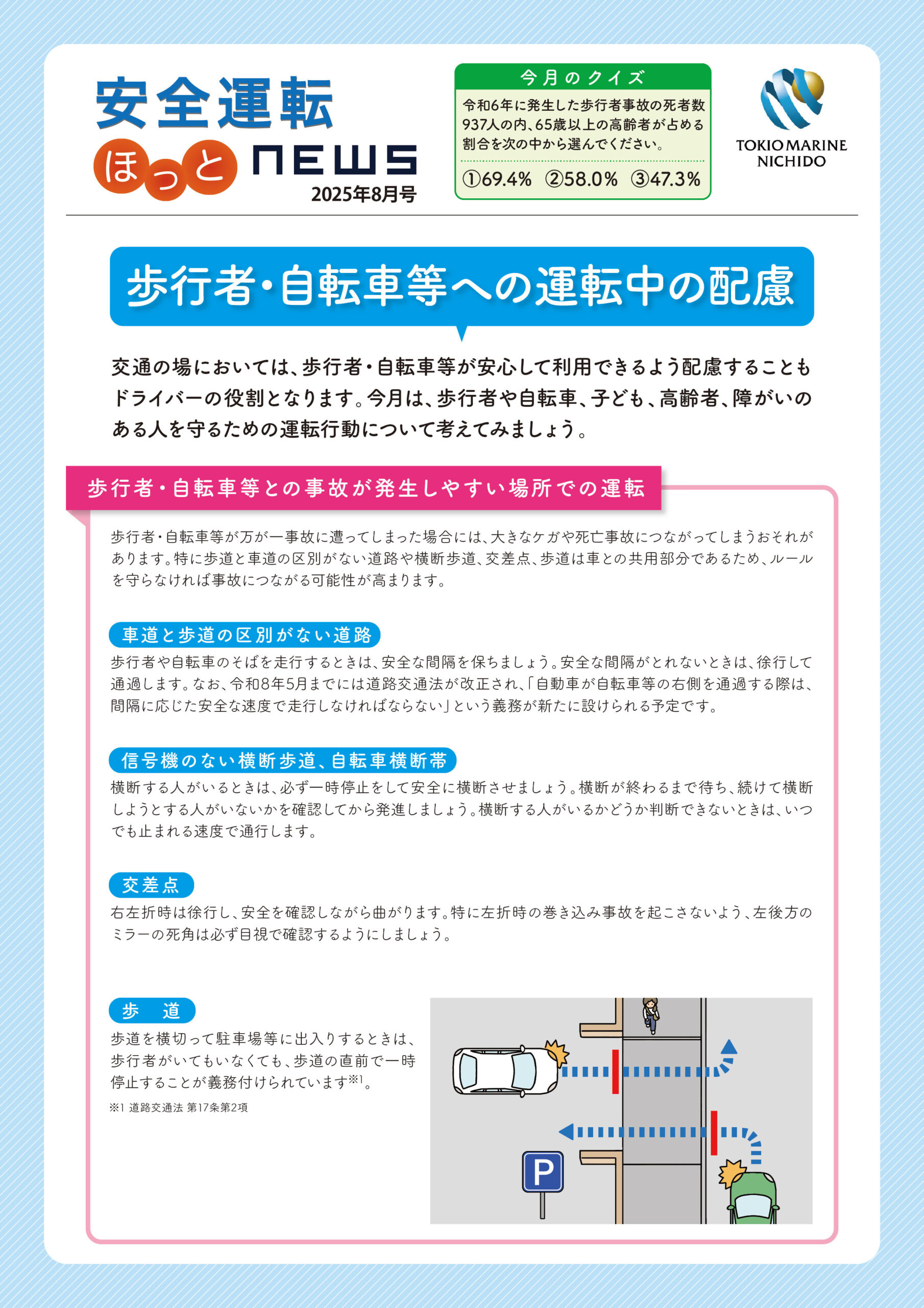 2025年8月号【歩行者・自転車等への運転中の配慮】 表面 裏面
