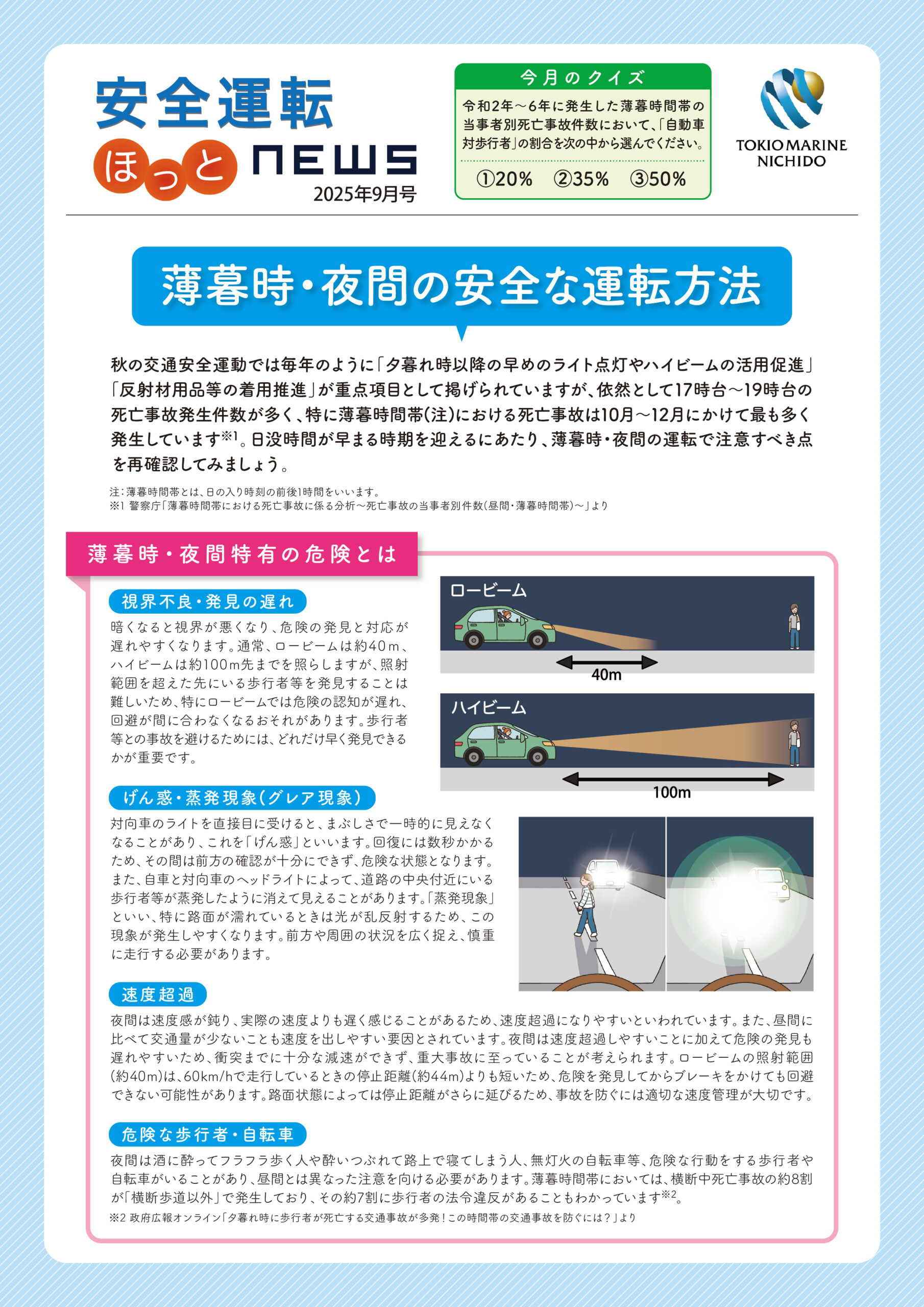 2025年9月号【薄暮時・夜間の安全な運転方法】 表面 裏面