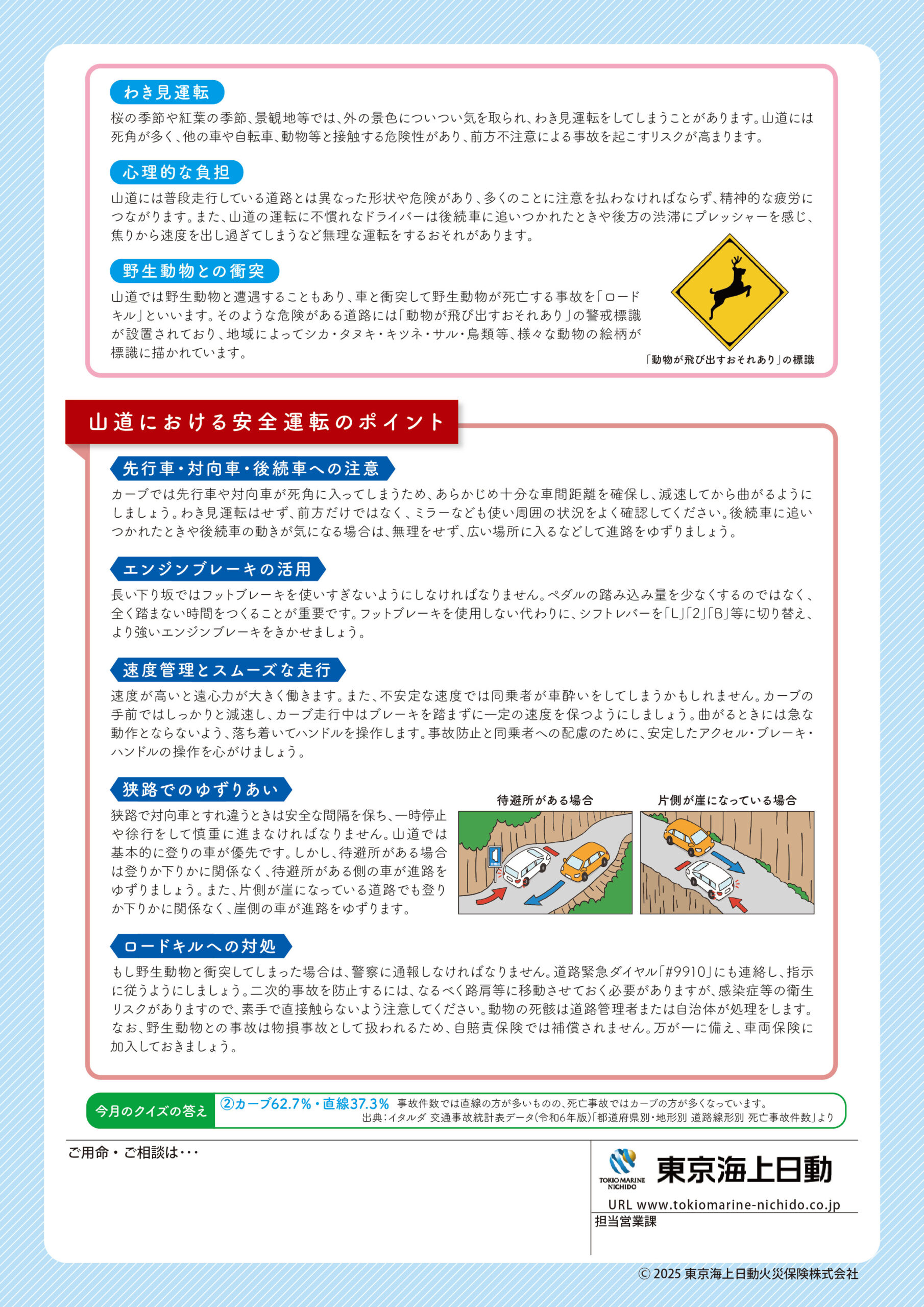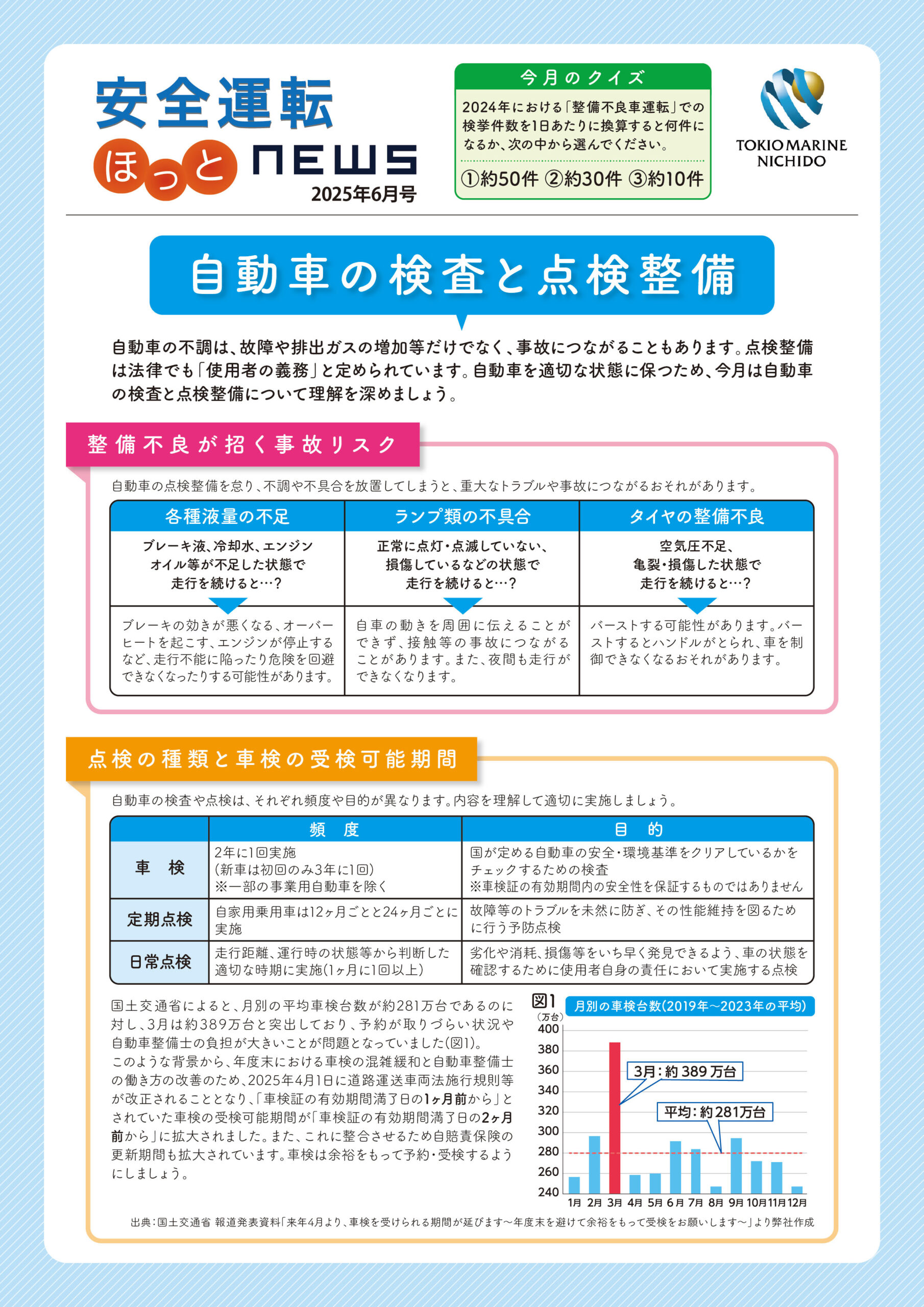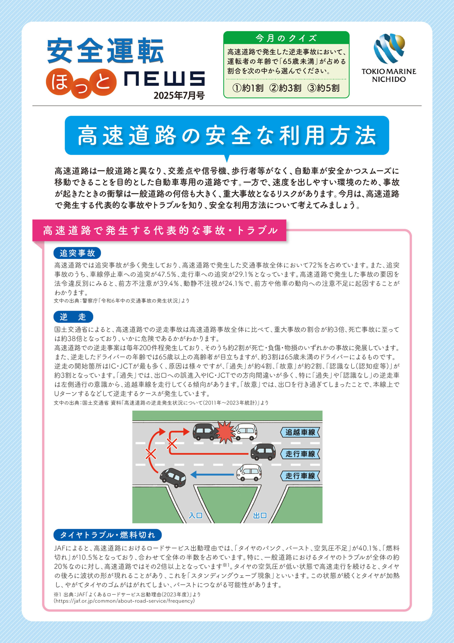 東京海上日動では「安全運転ほっとNEWS」と題して毎月一回お客様にご提供できる情報を配信しています。当社としましても広く皆様にお届けしたいと考え、2023年1月より当社LINE公式アカウントで月一回配信しています。ここではそのバックナンバーをご覧いただけるように致します。